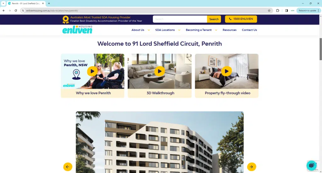 “Tenants have and always will be at the heart of everything we do at Enliven Housing. And so, we’ve built a website that is extremely user-friendly, collateral-rich and most importantly, accessible for Australians with a disability to easily get what they need – whether that’s connecting with our SDA specialists, exploring our properties or simply getting a better understanding of SDA,” Tino Carusi said.